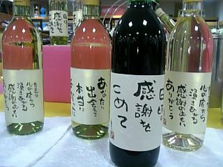 “ことばのアート”安部春彦氏が書いたラベルを、おらいのワインさ貼って販売します。彼氏、旦那、父ちゃん、会社の同僚、上司、いつもお世話になっている人、などに愛のこもったメッセージ入りのラベルはなじょだべっし?