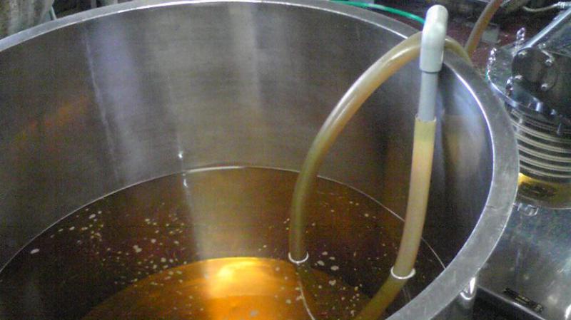 凍ったナイアガラで造った『アイスナイアガラ』。先日タンクから出して粗濾過(軽く濁りを取る濾過)をおこなったんだげんと、今日は仕上げ濾過(完全に濁りなどを取り除く濾過)をして瓶詰めしました。2007年産のは澱下げが上手ぐいがねくてよぉ(T_T) 濾過に手間取りました。画像は今日の仕上げ濾過のもの。