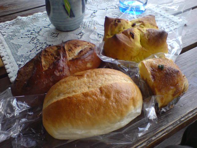 やっと商品の前までたどり着き、レーズンかぼちゃパン、くるみぱん、フレンチポテト、ハルユタカのパンを購入。お店のデッキで焼きたてパンをほおばる。実は、焼いた次の日の方が美味しいであろう、ハルユタカのパン。ぺろっと完食してしまった。レーズンもワインづけしてあって、やさしい味だ。