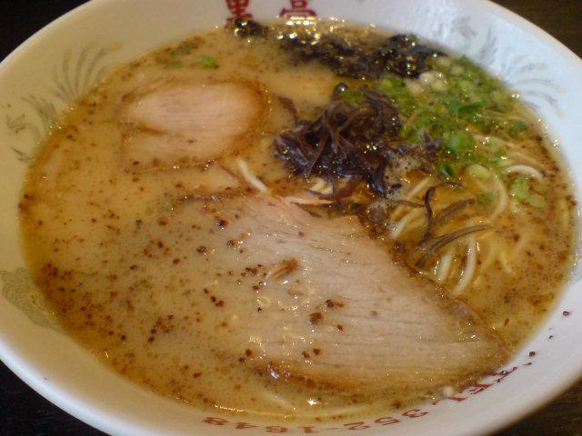 麺はストレートでスープは醤油とんこつ。焦がしニンニクが入ってうめぇー
