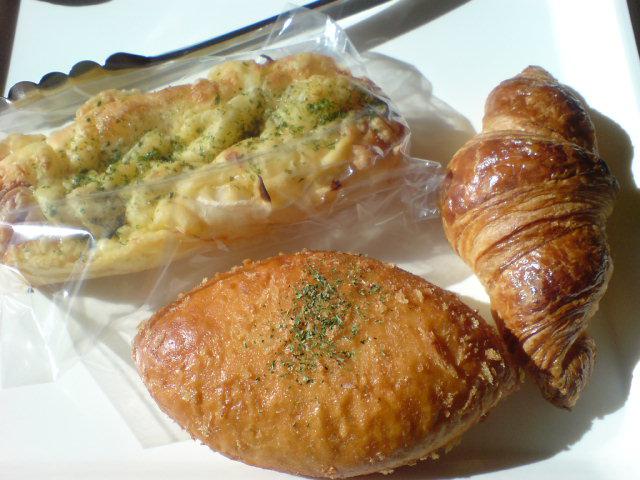 クロワッサン、カレードーナツ、チーズとオニオンパンを選んだ。