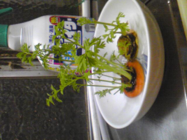 野菜の切れ端を水に付け台所の窓辺に置いておくと葉が伸び楽しいですよ…昨年はサツマ芋が天井まで伸びました。大根も花が咲きました。色々な野菜でお試し下さいませ……