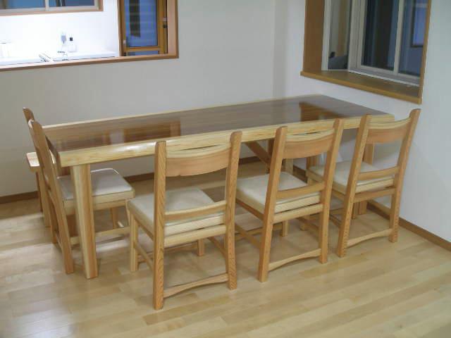 無垢の木で作った4人がけのダイニングテーブルセットをプレゼント。
