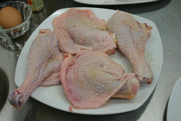大きい皿に塩と胡椒をふり、肉をのせてさらに上から塩と胡椒をふる。