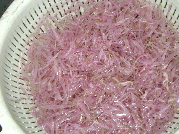 水にさらす時間を長く取り数回水を替えると、苦味が和らぎます。