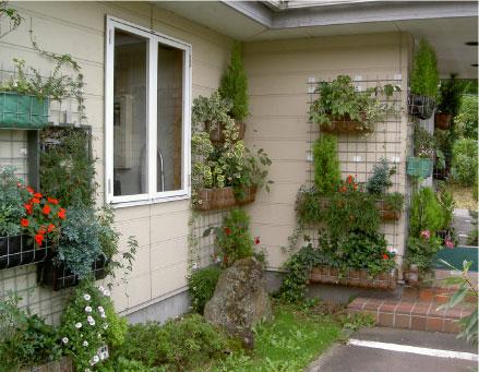 ▼花壇による壁面緑化