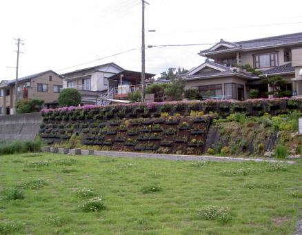 ▼河川側擁壁の緑化