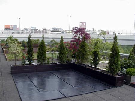 防水シートと保護マットにコーナー修景植栽箱設置