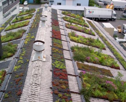 ▼工場屋根緑化