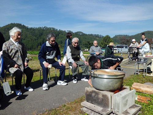 すがすがしい秋晴れの天候に恵まれ、2階フロア入所者による芋煮会が行われました。