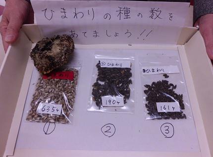 そこで、大中小3つのひまわりにいくつ種があるのか、みんなで予測してみました。