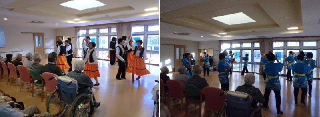 ヨーロッパ風の衣装でフォークダンスを踊る姿は、利用者様たちにとっては珍しいものだったようで、皆さん見入っていました。
