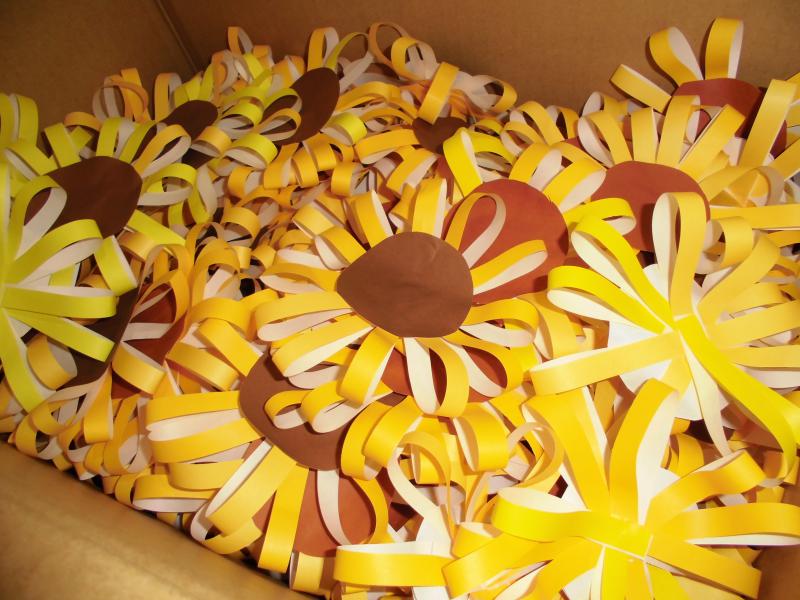 橙フロアの方々と楽しく、折り紙でひまわりを作ってくれました!