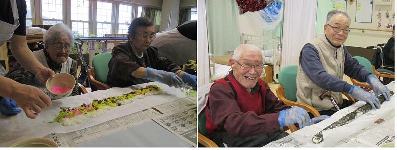 鬼退治の後は、皆で力を合わせて太巻き作りです。