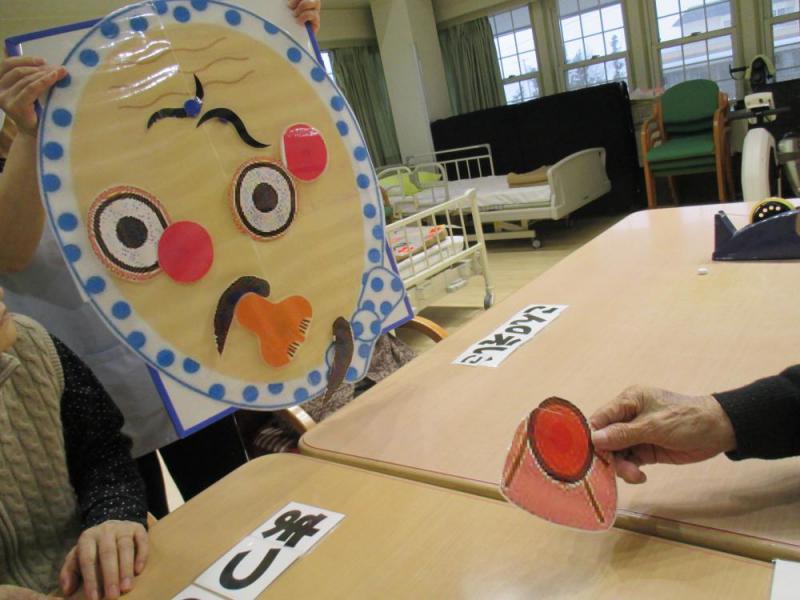 利用者様と一緒に「福笑い」を行いました。