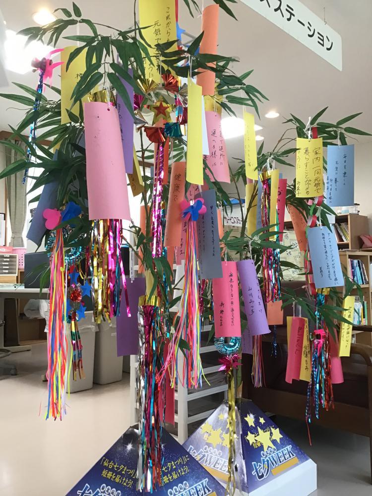 7月7日、今夜は七夕です。あゆみの園の二階にも七夕飾りを飾りました。