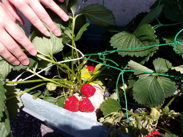 去年の冬に植えた苺がたくさん実を付けました。