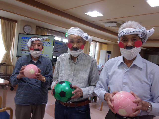 ボール送りの後は…最後の代表者がチョビ髭を付けて仮装(笑)