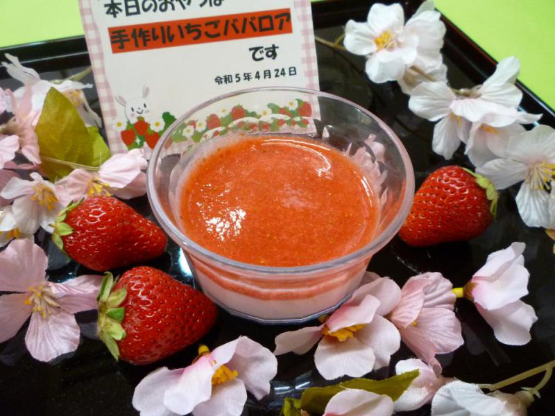 苺ソースたっぷりの苺ババロア。皆さん完食されておりました。