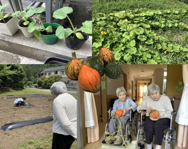 5月末頃から10月上旬まで、施設の裏の畑にてかぼちゃを利用者の方々と育てました!職員と共に畑の様子を見たり、水やりを行い無事5つのかぼちゃが実り収穫することが出来て、皆さん喜んでいました。収穫したかぼちゃは、栄養課の方に渡し今月の31日に提供するかぼちゃプリンに使用してくれるそうです!!たのしみだなぁ〜(*^^*)