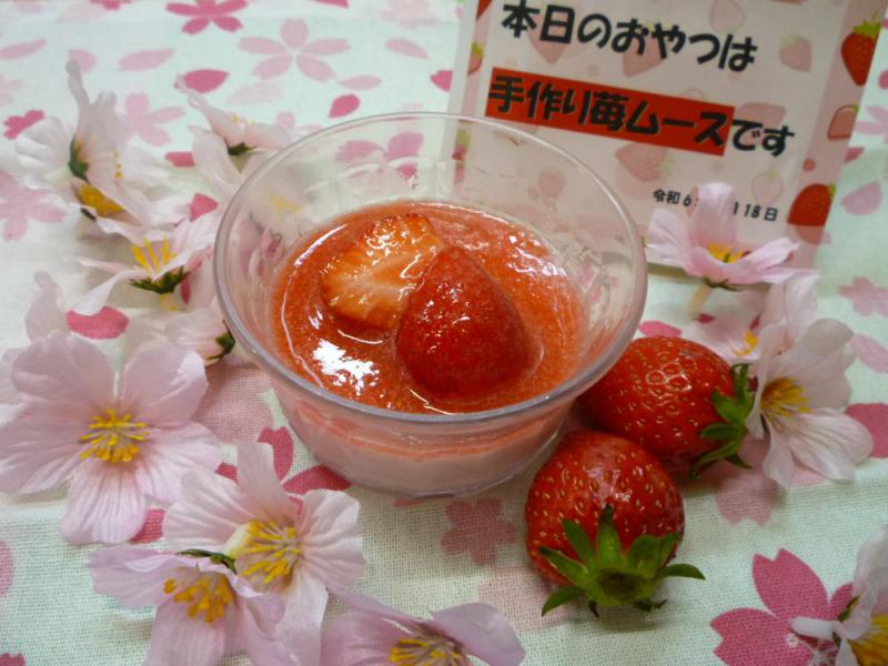 今月のお菓子の日は、「手作り苺ムース」を提供いたしました。