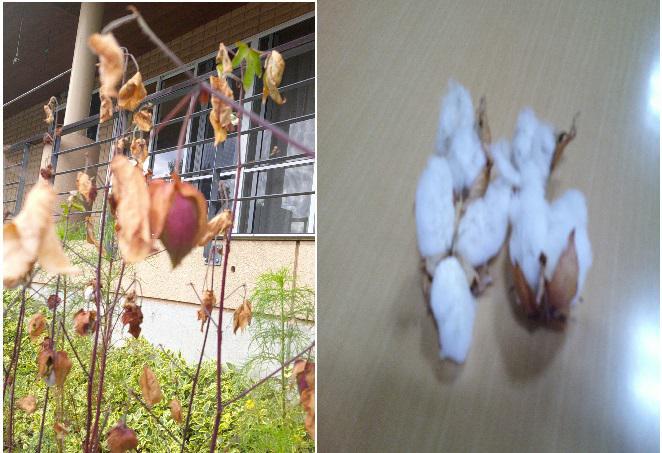 今年の春に植えた種から綿が実りました!!