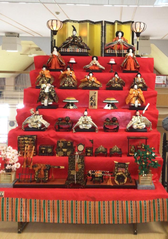 入所フロア2階の太陽の広場には、今年も7段飾りのひな人形が飾られました。