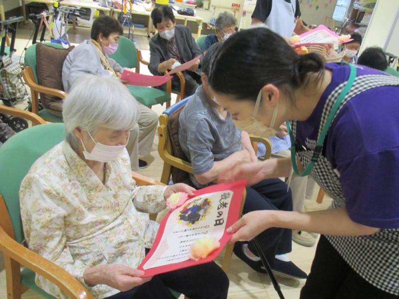 今年は何をプレゼントしたら喜んでいただけるだろうと考え、利用者様1人1人にそれぞれの名前を使った「あいうえお作文」で感謝の気持ちを伝えました。とても喜んでいただけて良かったです。