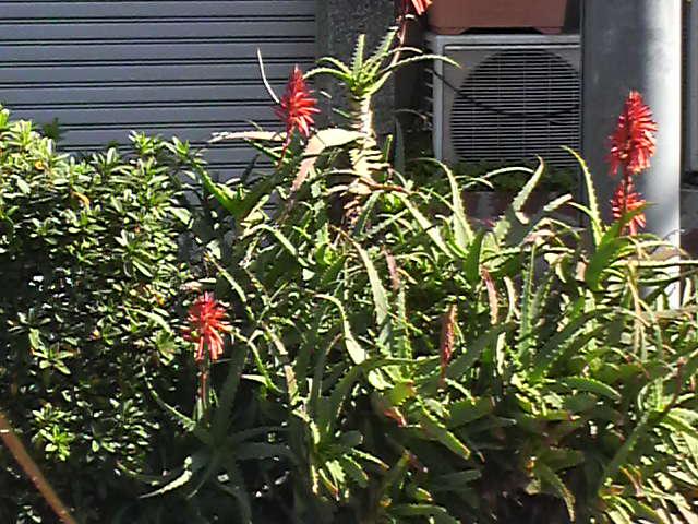 何気に路肩を見たら、なんとアロエに花が咲いていた。初めて見たけど、こんな花が咲くんだなぁ。