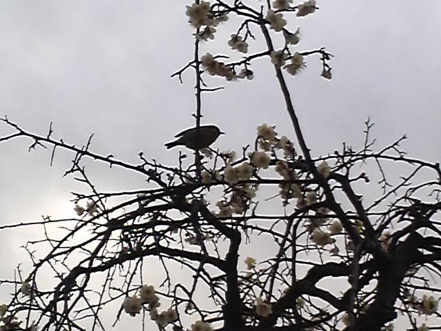 梅にウグイス(?)。