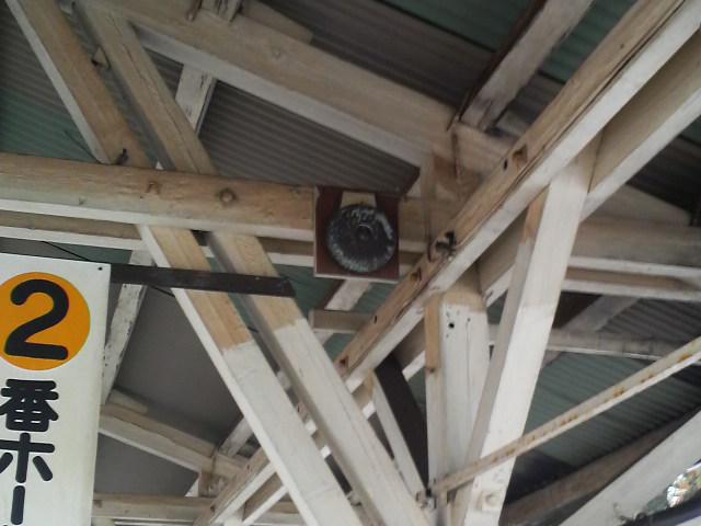 今朝乗り込む際に、ホームの天井をみていたら、発車のベルらしき物を見つけました。