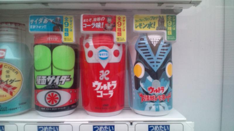 きのう何気に自販機を見たらなんと「仮面ライダー」や「ウルトラマン」そして「バルタン星人」のジュースが入っているではないか。