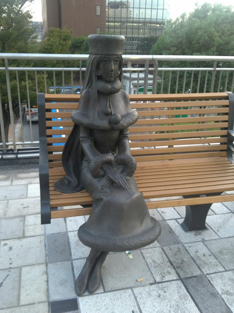 駅前になにげにでてみたら、妙齢のご婦人が座ってした。