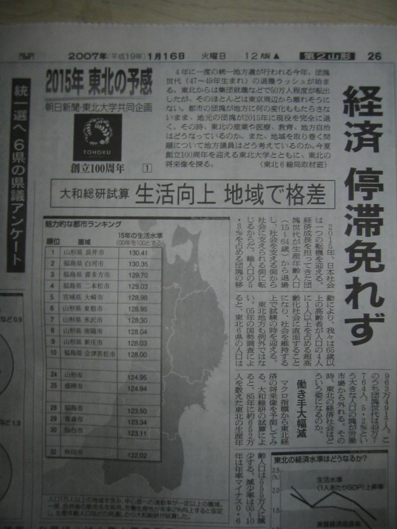 朝日新聞と東北大学共同企画、2015年東北の予感と言う記事。