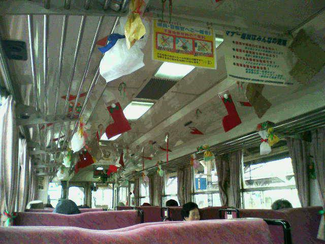 すると車内にはクリスマスの飾りと思われる装飾が。