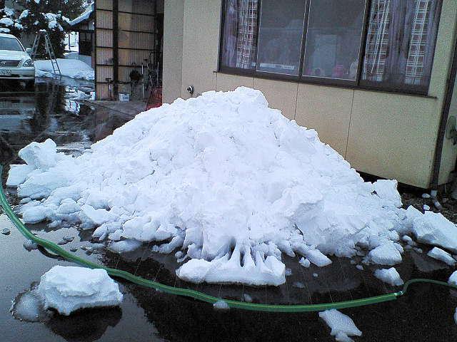 ◎ 降ろした雪は、早速溶解にかかります。一晩ではちょっとむりかもね。