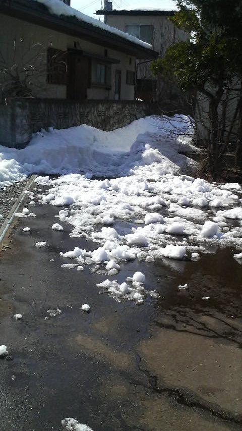 私も負けず劣らず雪と格闘。こんなに暖かくても、下の方は氷です。