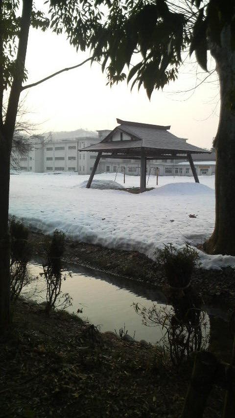 ◎ 朝早くの小学校のグラウンドです。間も無く走り回る子供達がみれますね。元気が貰えます。早く雪が消えないかなぁ。