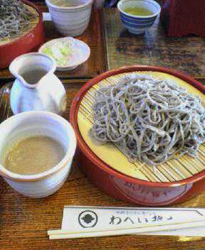 最初に着いたのは秩父駅から徒歩10分ほどの所にある蕎麦屋「わへいそば」。ネットで見つけたのですが「胡桃汁」で戴くクルミ蕎麦が人気があるそうで、そこでお昼にしました。