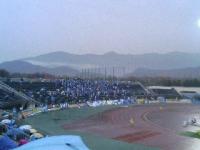 結果は0-0のスコアレスドロー。 内容的に非常に引き締まった好ゲームでした。 しかも、どちらかといえば、全体的に見ると山形が押していたゲームでした。 山形は主力のうち、今年のみちのくダービーで2得点しているウッチーをケガで、永井と匠を出場停止で欠いていたんだけど、それを忘れさせるくらいしっかりしたサッカーをしていました。 とくに、章吾とレオのセンターバックを中心にいい守備をしていたのがしっかりしたサッカーにつながっていたのではないでしょうか? あとは、決めるべきところ決めて、結果がよければ最高なんだけど・・・。 とりあえず、今日の結果で、来年もみちのくダービーが出来ることが「ほぼ」決まったんじゃないでしょうかね? 来年も熱いゲームが楽しみだぁ。 今日はちょっと出発が遅くなって、スタジアム着いたのが12時30分。試合開始が14時だから1時間30分前には着いたんだけど、ビジター自由席(モンテのサポ席)はすでに埋まっていて、私たちの席は一番後ろの座席、っていうか通路。 見づらかった・・・。 やっぱ、早めに出るべきだったなぁ・・・。 ダービーはこんなことろも甘くない!! |