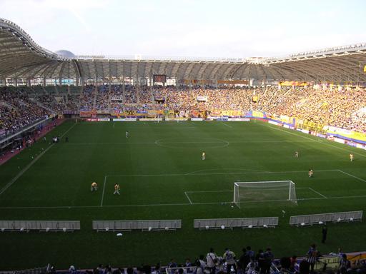 今日はちょっと出発が遅くなって、スタジアム着いたのが12時30分。試合開始が14時だから1時間30分前には着いたんだけど、ビジター自由席(モンテのサポ席)はすでに埋まっていて、私たちの席は一番後ろの座席、っていうか通路。