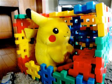 ピカチュウのお家を作っていました。