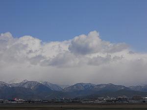 上空は晴れなのに、山々は・・・雪ですね〜・・・