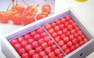 1粒1粒選別されたさくらんぼが並びます