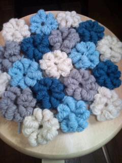 コイル編みのモチーフを繋いで。
