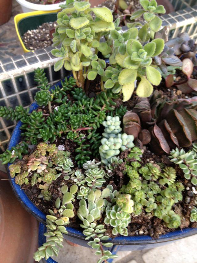 多肉植物の寄せ植え、スカスカだったのでセダムを足してみた。