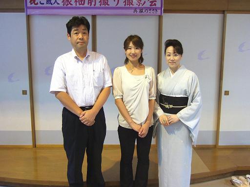 メイク・ヘア・着付けが終わったお客様にインタビューする相磯アナ。