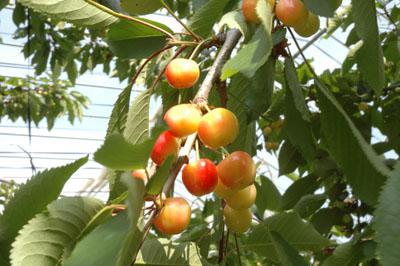 さくらんぼ収穫の際は、赤くなった実を先に摘んでいくと、その他のまだ青い実がやわらかくなってしまい、おいしいさくらんぼにならなくなります。ここは我慢のしどころで、ほぼ赤くなった良いタイミングで一気に収穫しています。これもわたしたちの果樹園の特長です。