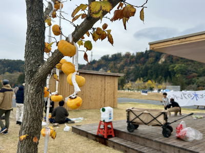 広瀬川沿いでも柿に実がたわわになっていて、自主的に回収していました。