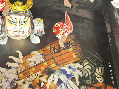 壁一面にねぶたの絵が描いてあり、「制作 北村隆」のサイン。